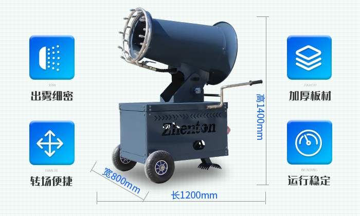 | 型號 | 靜風(fēng)射程 (m) | 風(fēng)機功率(Kw) | 水泵功率 (Kw) | 總功率(Kw) | 俯仰角度 (常規(guī)) | 旋轉(zhuǎn)角度 | 噴頭數(shù)量 | 20米處噪音 (dB) | 箱體重量 (kg) | ||